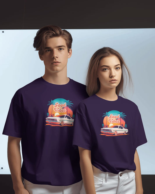 Couple combo of Navy Blue Premium cotton biowash Round neck T-shirt(2 Unit)